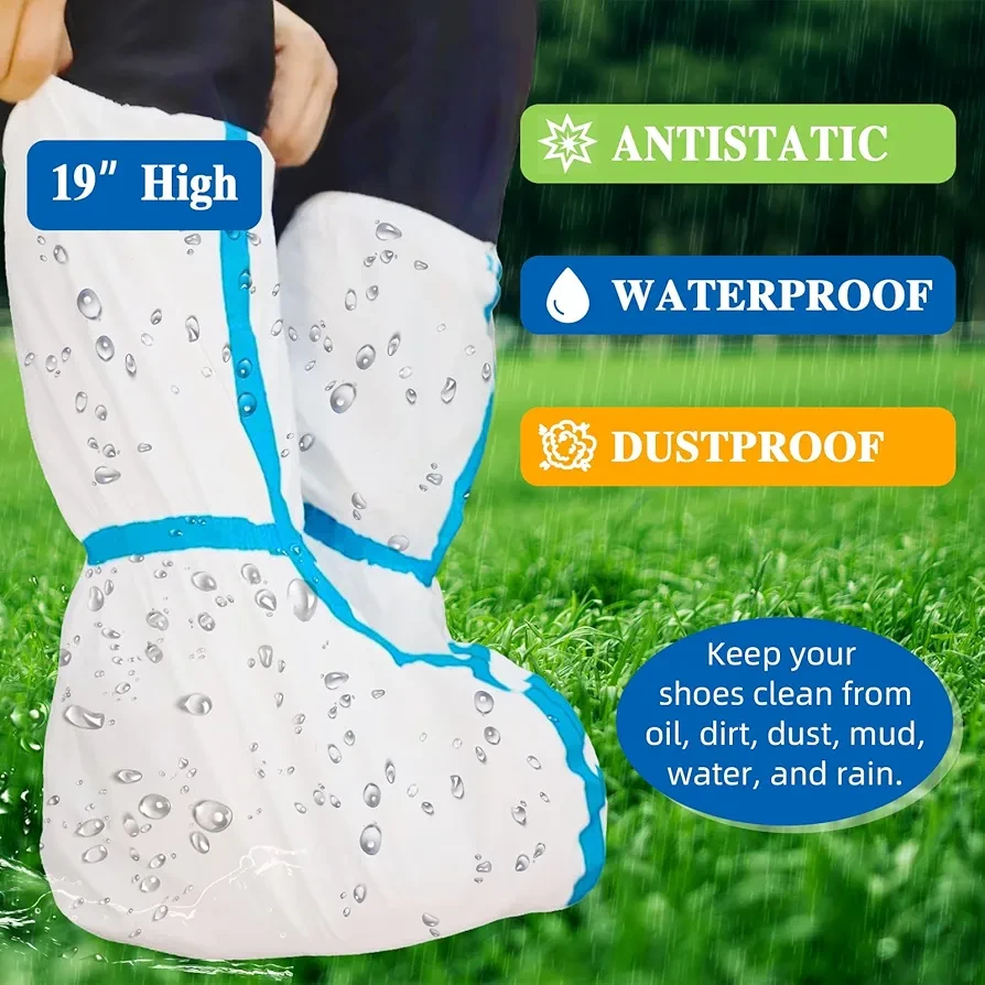 20 Pairs Boot Covers Disposable, Waterproof Shoe Covers, 19 inch Extra-Tall, One Size Fits Most, Splash-Resistant Shoes covers for Rain,Hazmat, Factory Workshop Lab Lawn Outdoor (White)