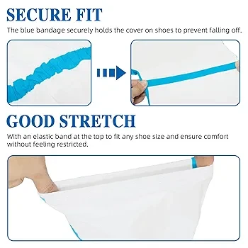 Easy to Slip On and Off: The blue bandage securely holds the cover on shoes to prevent falling off. With an elastic band at the top, they are designed to fit and ensure comfort without feeling restricted.