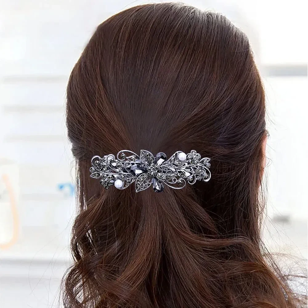 4 PCS Hair Barrettes for Women Ladies, Flower Crystal Rhinestones Barrette Pearl Spring Hair Clip Accessories Women Fashion Ponytail Holders Barrette for Daily Wear Mothers Day present