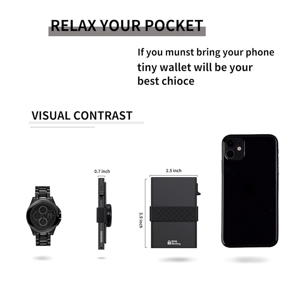 【MINIMALIST FRONT POCKET DESIGN】: This tactical men's wallet is very thin and portable to carry in hand or any pocket. The slim cardholder measures 3.8 x 2.5 x 0.3 inches, weight only 2.5oz, which is cool and convenient.