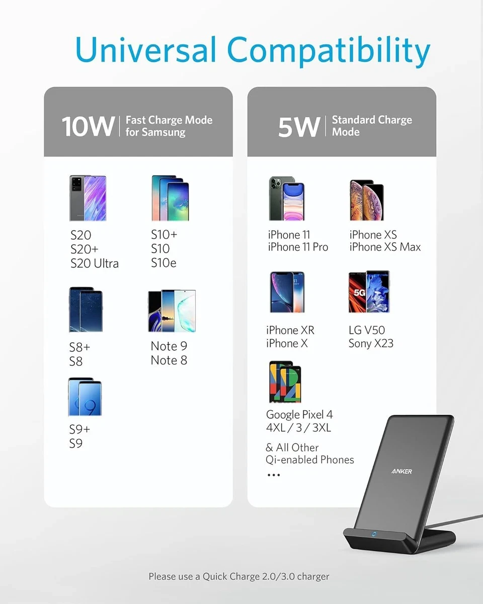 Anker 313 Wireless Charger (Stand), Qi-Certified for iPhone 15/15 Pro/15 Pro Max/14/14 Pro Max, 10W Fast-Charging Galaxy S20, S10 (No AC Adapter)