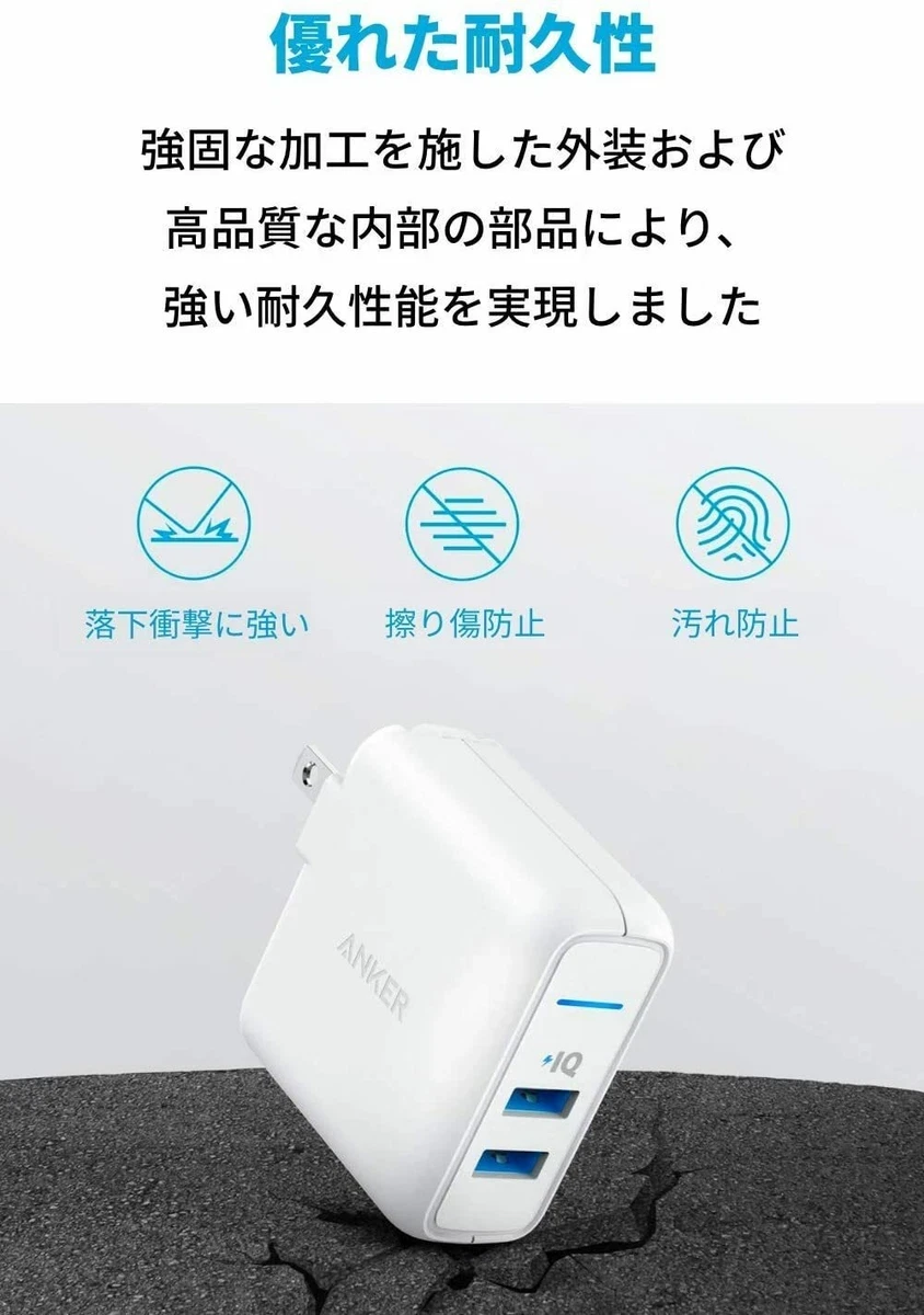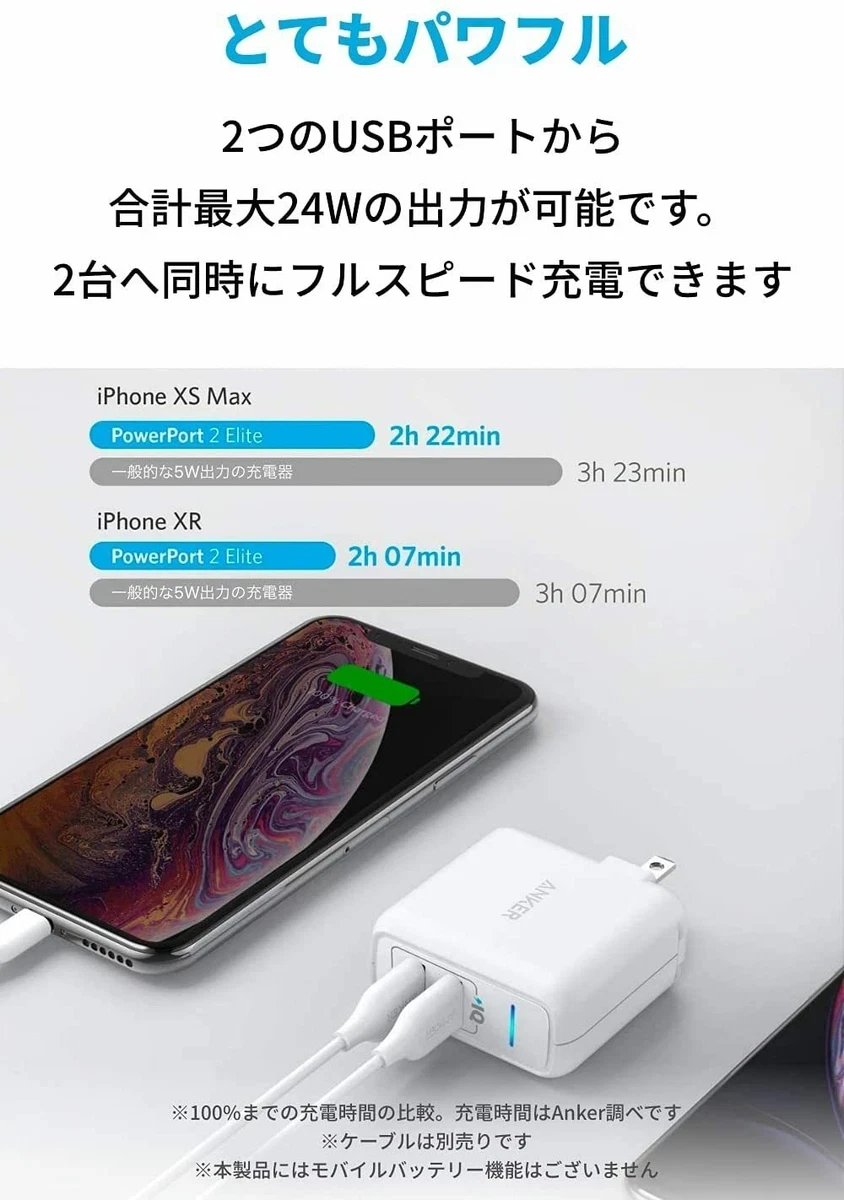Anker PowerPort 2 Elite USB Quick Charger 24W 2 Ports [PSE Technical Standards /PowerIQ/With Folding Plug/Ideal for Travel】 iPhone/iPad/Galaxy S9/Xperia XZ1, Other Android Support White