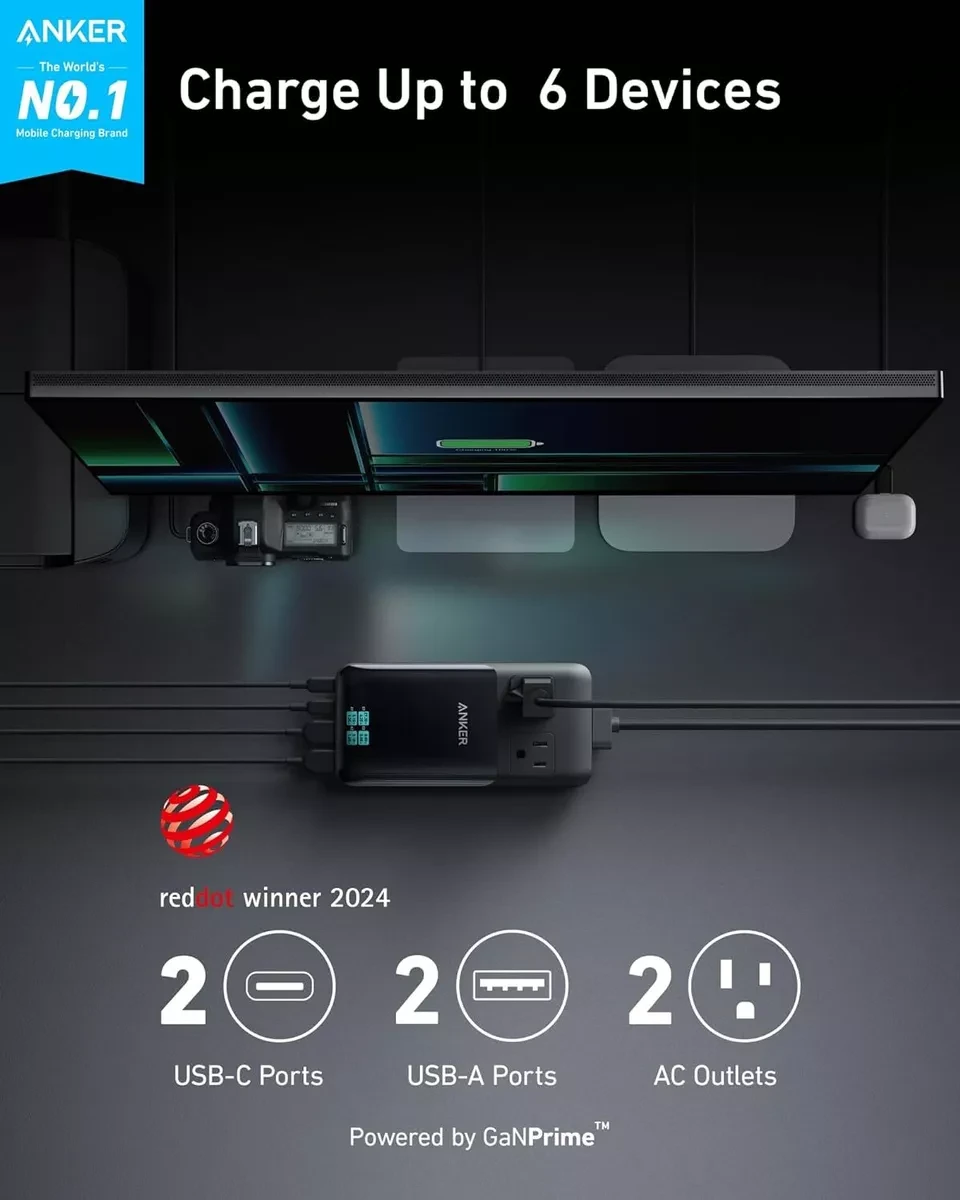 Anker Prime 6-in-1 USB C Charging Station 140W Compact Power Strip 6 Ports