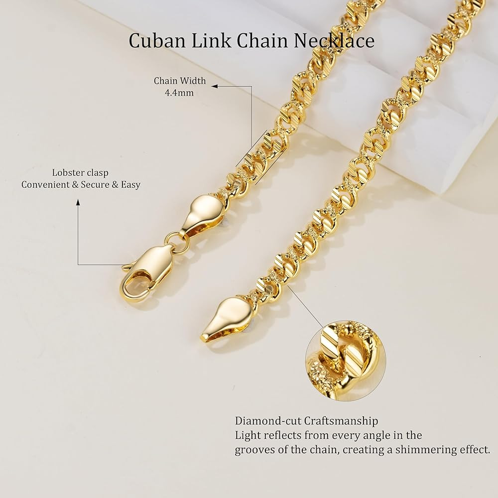 Audrey store 14K Gold Necklaces for Women Diamond Cut Golden Cuban Link Chain for Men Cuban Link Chain for Womens Engraved Patterns Chunky Gold Necklace for Women Non Tarnish 16-24IN (16in)