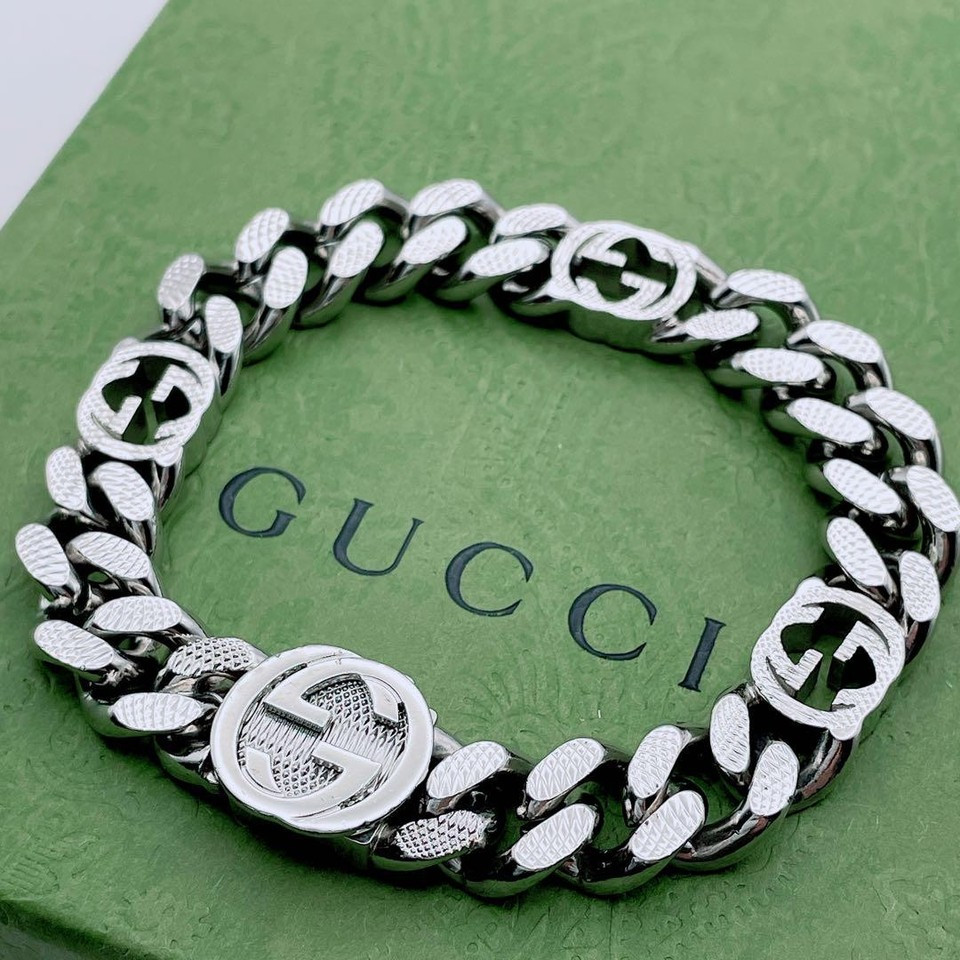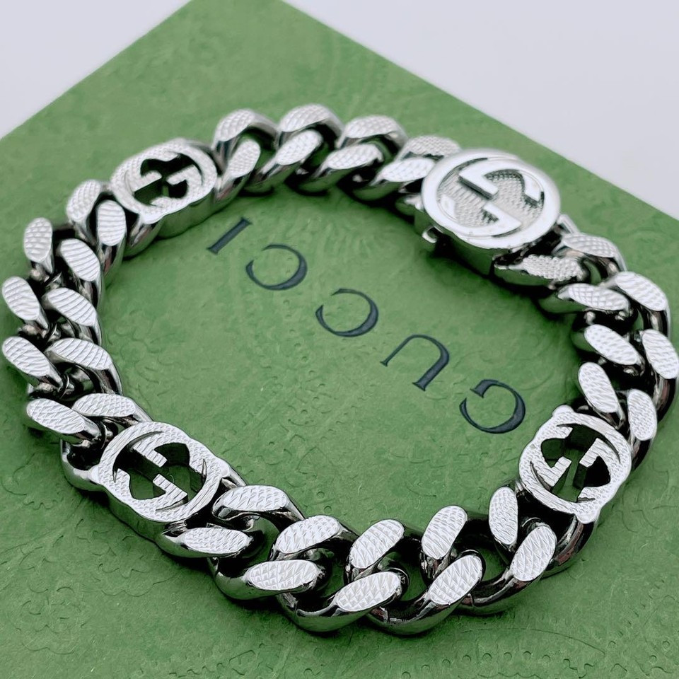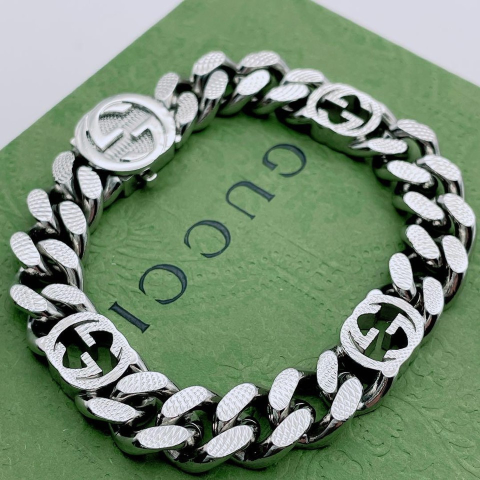 Authentic Gucci Interlocking Chain Bracelet 16.5cm Mens Fashion Accessory