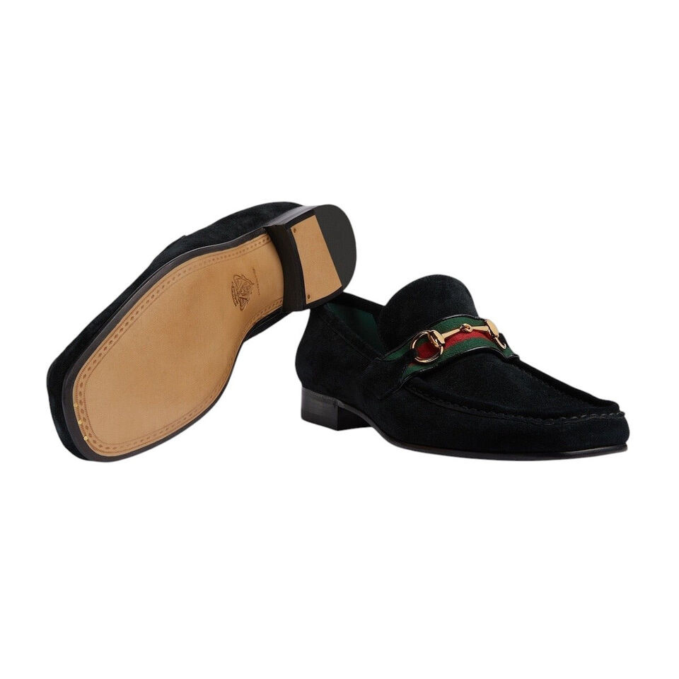 Authentic Men's Gucci Black Supersoft Suede Horsebit Loafers 757771 New $950
