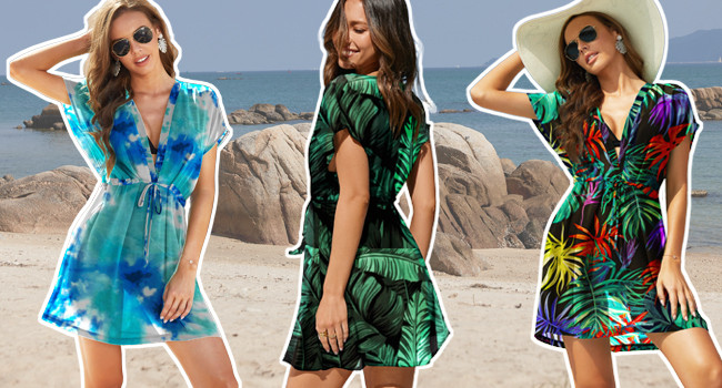 This bikini coverup comes with a deep V neck, chiffon short sleeve, long enough to cover bottom. It provides a good amount of coverage, is the most ideal item for wearing at beach and swimming pool