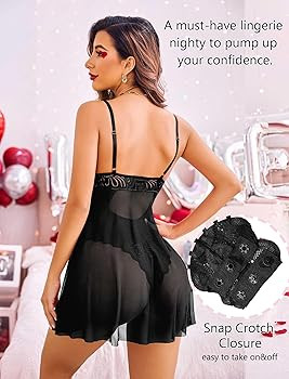 Lace Babydoll Lingerie is made of 95% polyester and 5% spandex. Soft floral lace and mesh fabric, stretchy and comfortable, show your figure curvier and relax your body.