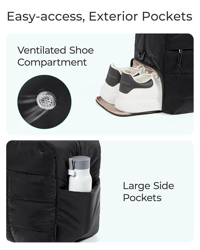Puffy & Water-resistant: BAGSMART gym bag offers a comfortable carrying experience, whether sling it on buses or plop it on soggy fields. Popular puffer design makes it lightweight yet spacious, water-resistant fabric, don't worry about rainy days. Size: 15.7 x 9.1 x 11.8 inches