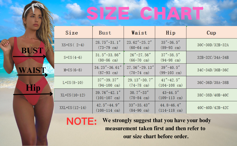 • Feature:This High waisted swimsuit with double layer fabric,full lined,stretchy,pro-skin,durable,makes it easy and very comfortable to wear.knot front Push Up bikini top and high rise thong bottom.Top with double shoulder elastic straps closure,removeable soft bra padded,wide back band,push up bra for support and good to cover your body.high cut style make you look slim, sexy and unique,show you more flattering.