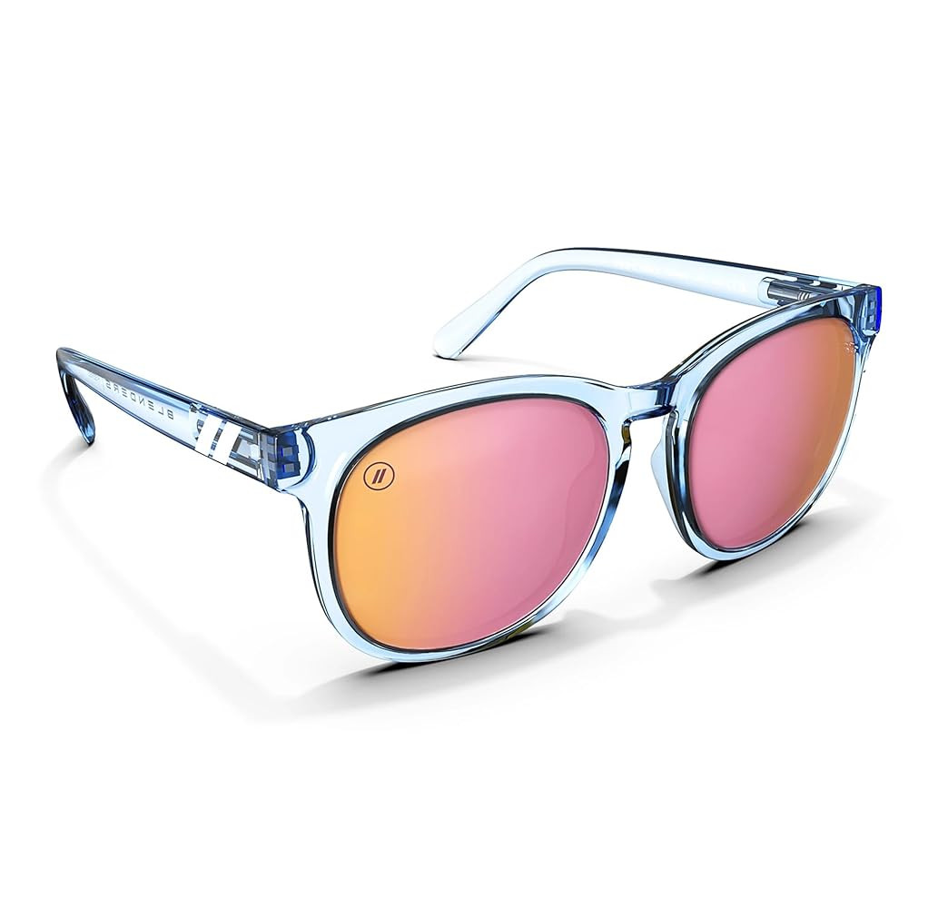 • Sensationally Sophisticated, All-the-way Fabulous: Polarized pink mirrored lenses and an ice blue gloss frame make a strong first impression that’s distinctly Blenders, designed outside-the-box to keep you perpetually doused in a dazzling sunset