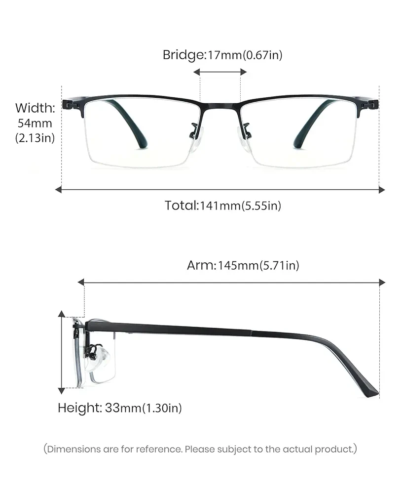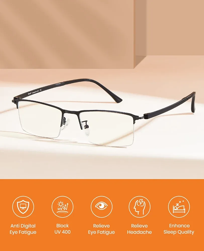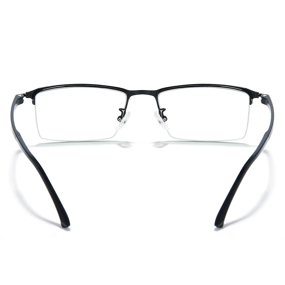 Blue Light Glasses for Men Semi Rim Glasses Crystal Lens Rimless UV Blocking Gaming Eyeglasses Black 8003