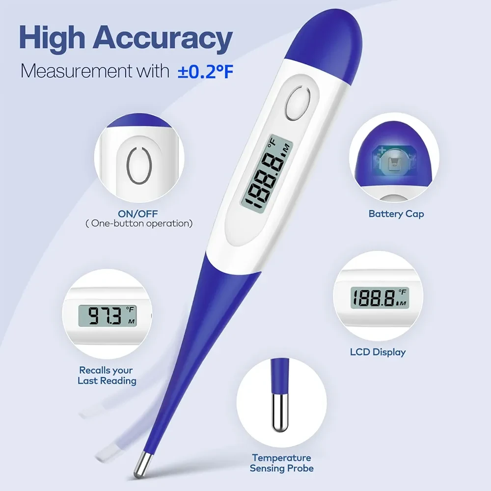 Accurate and Fast Reading: This digital thermometer uses the latest and most advanced sensor probe and takes only about 10 seconds to get a reading. Its temperature - reading function has been clinically tested, enabling it to accurately detect fever. Thus, it can assist you in deciding whether you need to rest or seek medical care.