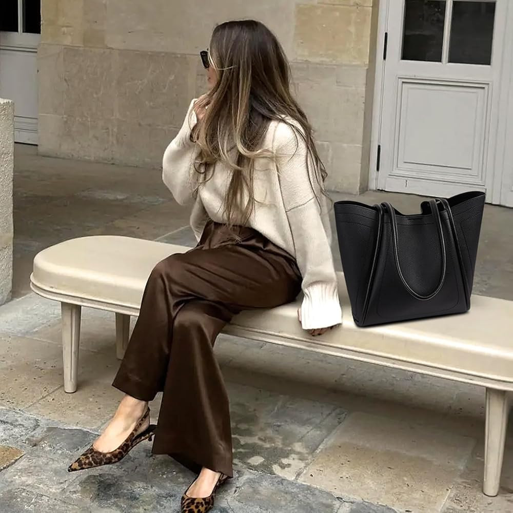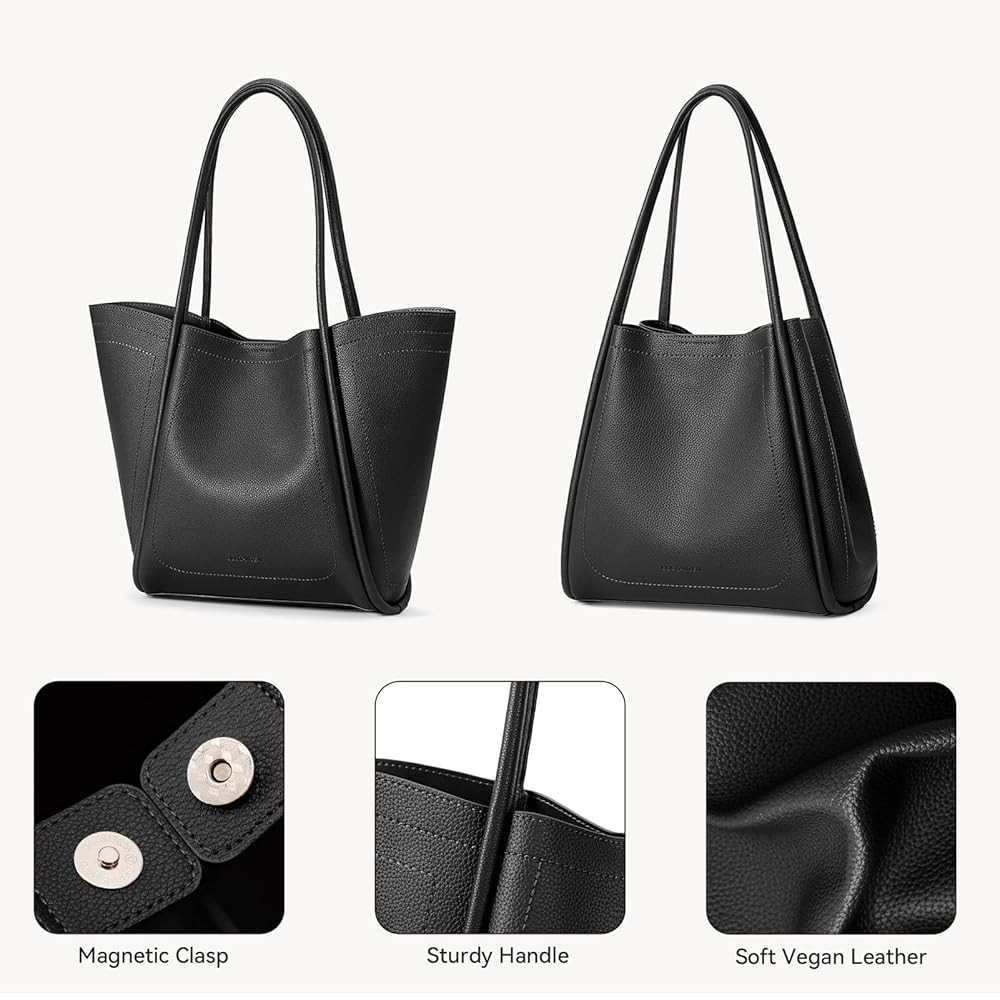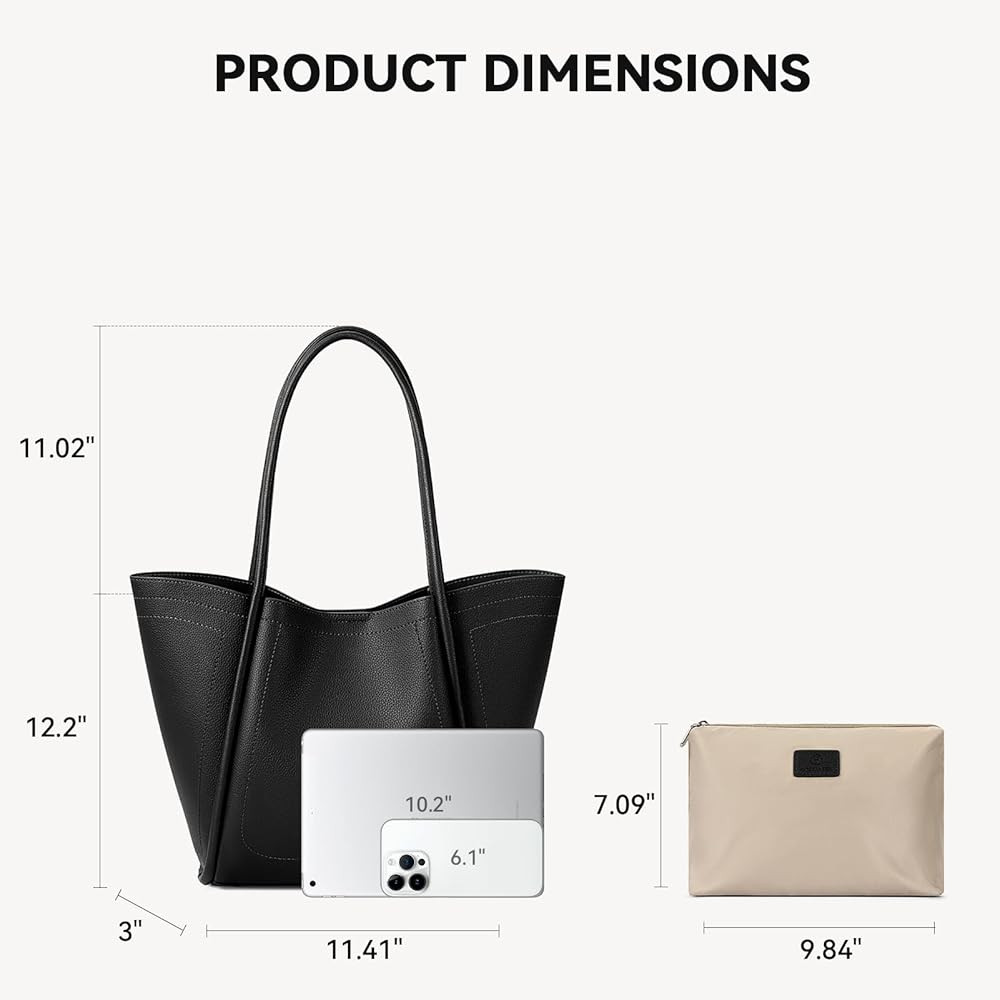 • Medium Purse for Women: The main bag of this women's handbag measures 11.4"L x 3"W x 12.2"H, which can accommodate notebooks, daily items and a 13" Laptop (Note: Not suitable for larger laptops). There are no additional compartments in the main bag, but a small makeup bag (9.84"L x 4.3"W x 7.09"H) is included, which can be used to store makeup, keys, glasses case, and keep things organized
