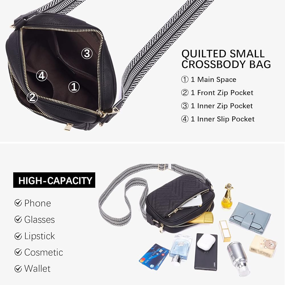 Fashion Designed: The crossbody bags with 1 main zipper pocket that contains 1 zip pocket + 1 slip pocket. External with 1 front zipper pocket. Top zipper closure ensures the safety of personal items