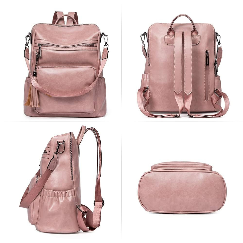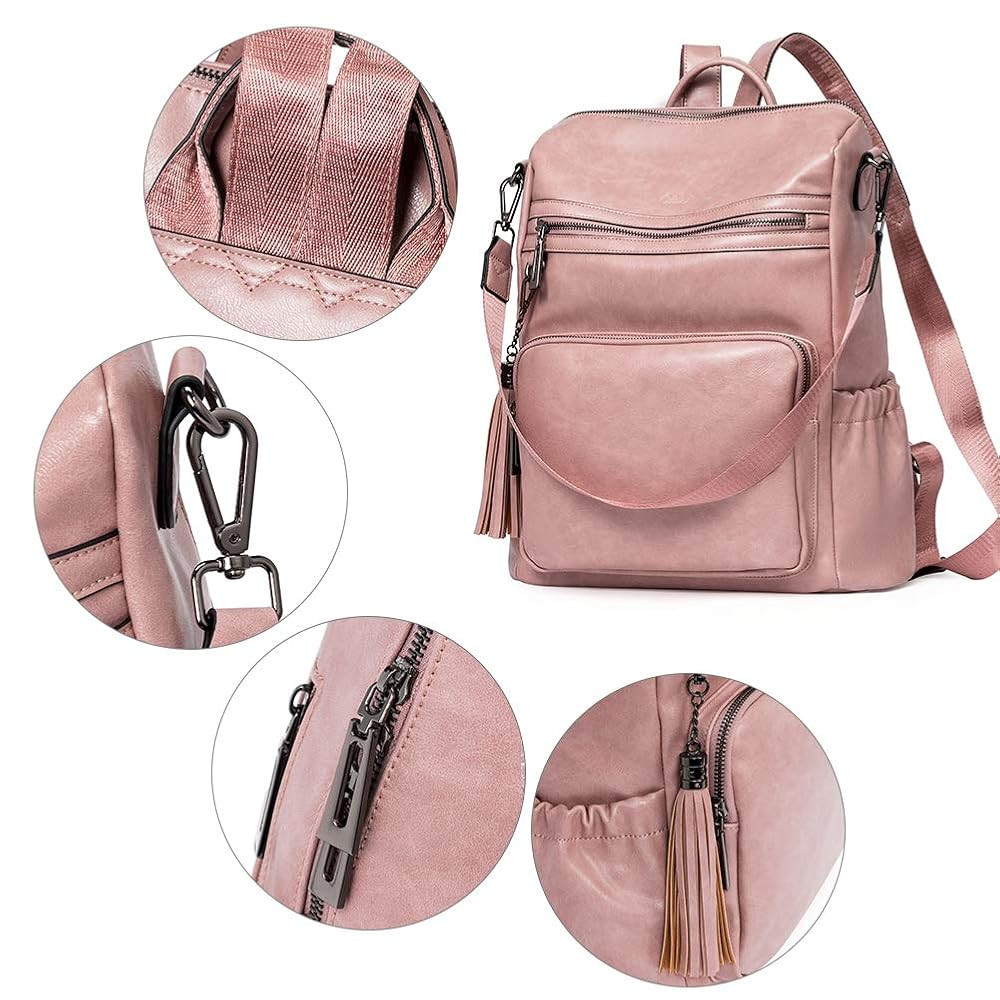 CLUCI Backpack Purse for Women Fashion Two Toned Leather Designer Travel Large Ladies Shoulder Bags with Tassel pink