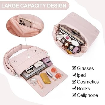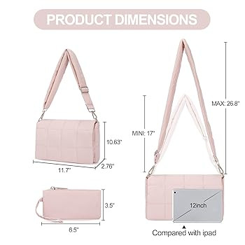 【LARGE CAPACITY】: Puffy crossbody bag for women size -11.7 x 2.76 x10.63 in (L x H x W). Light weight: 1.5lbs.The puffy tote bags can hold your daily needs, such as phone, wallet, keys, cosmetics, etc.