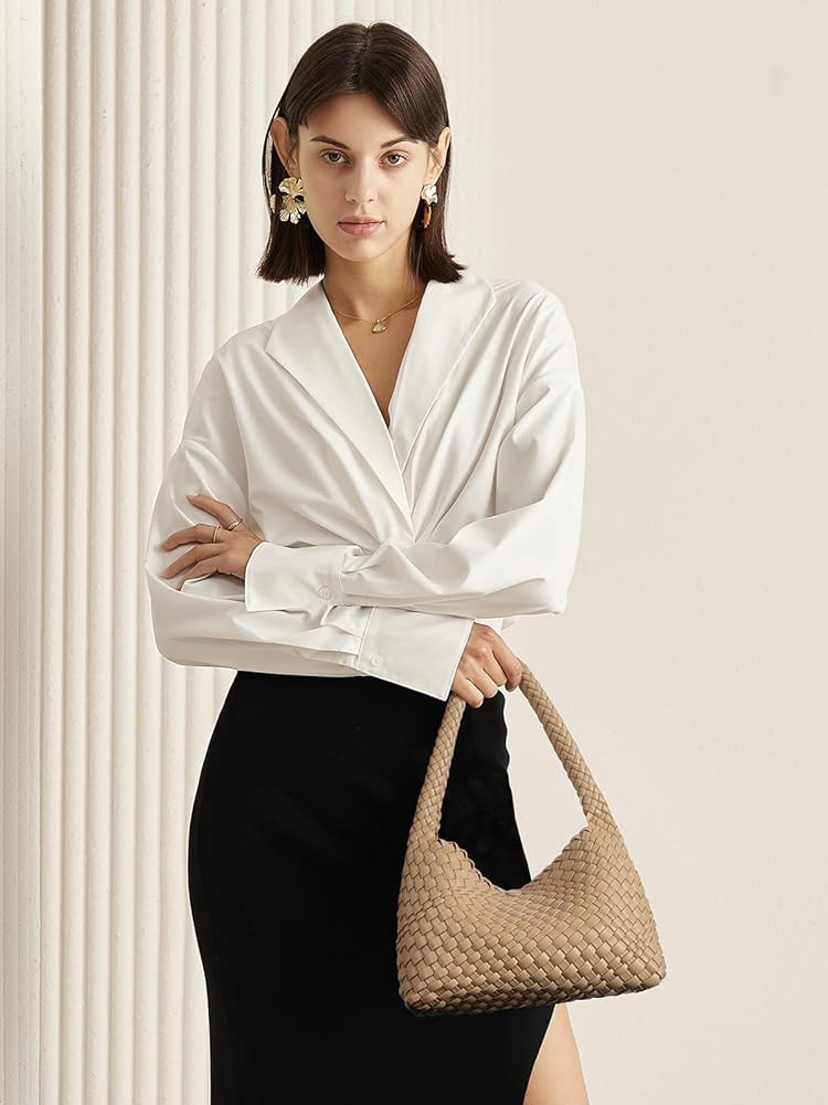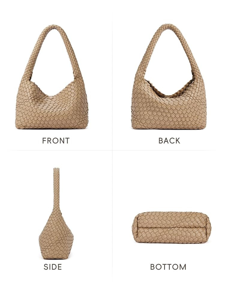 • 【Vegan Leather Tote】It is a hand-woven tote bag that is incredibly soft to the touch and is made of vegan leather.The tote bag fabric is soft and comfortable,it easy to wipe clean.Not only does it exude style, but this eco-friendly material ensures that no animals are harmed in its production.The intricate interlaced pattern and delicate woven detailing add a touch of sophistication, making this bag an admirable accessory.