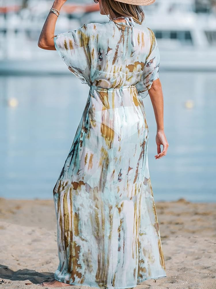 Women Swimsuit Coverup: Kimono cover up, Open front swimsuit coverup, Long beach cover ups for women, Maxi swimsuit coverup for women, Self tie bathing suit cover up