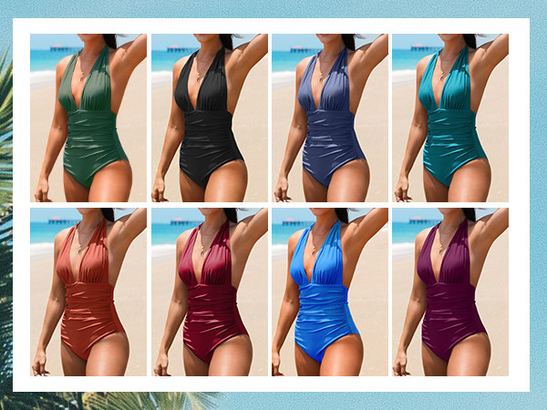 Design: Our Classic Halter Tummy Control One Piece Swimsuit Looks Great on Everybody! This Bathing Suit Features A Deep V-neck, Ruching Details at the Front and Padded Cups for Extra Support