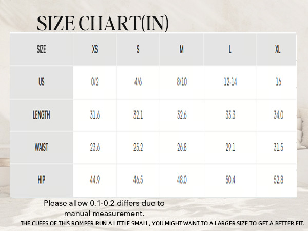 [Perfect Sizing]: V neck wide leg Coverup outfit available in XS, S, M, L, XL. Please refer to our size chart for specific measurements to achieve the perfect fit. Model Wearing Size: S Height: 5'6"in Bust: 34 in Waist: 26.0 in Hips: 33.9 in. The overall size of this jumpsuit is a little small, especially the cuffs. It is recommended that you buy a size larger to get the best product experience