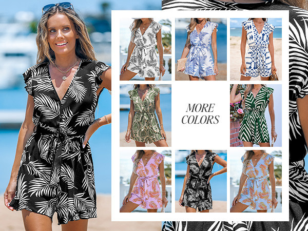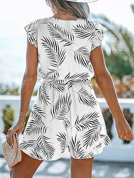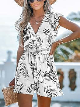 [Unique Design]: Get ready for paradise with our Tropical Surplice Flutter Sleeve Romper! Whether you're exploring new destinations or lounging poolside, this versatile romper coverup adds a touch of tropical flair to your vacation wardrobe. Short Sleeve Womens Romper/Floral Print Womens Jumpsuit Shorts/Wrap Jumpsuit/Summer Romper for Women/One Piece Shorts Jumpsuit For Women/Cupshe Romper Jumpsuit For Women.
