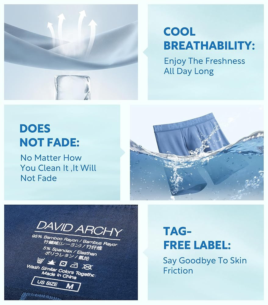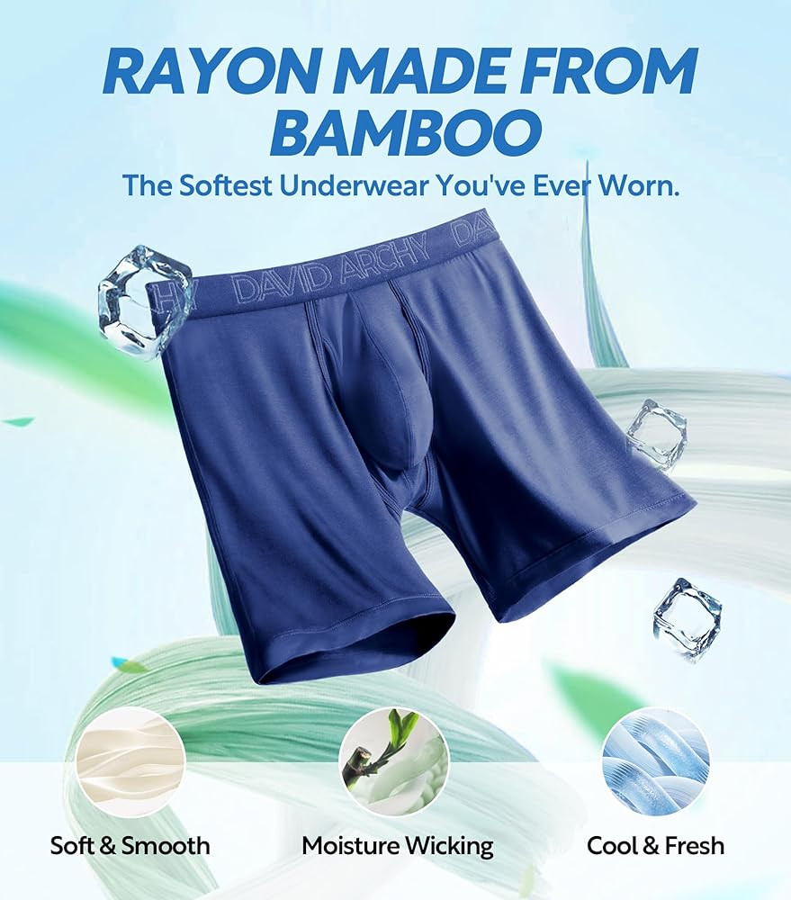 BUILT FOR SOFT: Experience the ultimate in comfort, luxury soft rayon made from bamboo is gentler than cotton and refreshing to the touch. The flex-wide waistband keeps your men's underwear from pinching, catching, or leaving marks, and the no-tag design ensures itch-free comfort