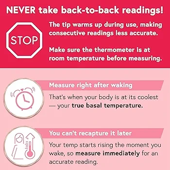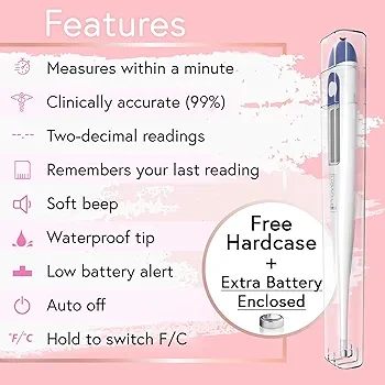 Reading in 60 seconds, faster than any other BBT — The ovulation thermometer has a small tip that warms up quicker and therefore delivers an accurate reading of your real body temperature faster.