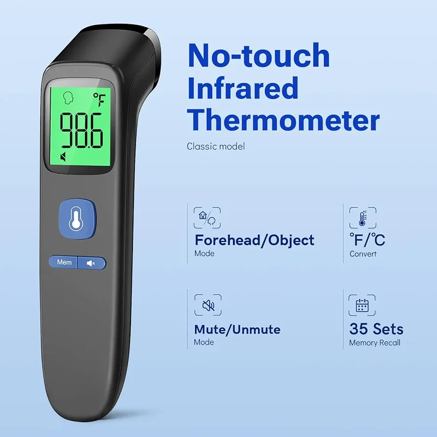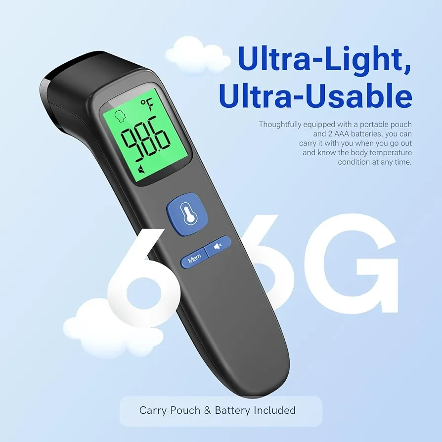 DUAL MODE & MULTIPLE USES: Viproud Thermometer is an all-in-one super practical thermometer - with forehead mode & object mode, capable of measuring forehead, room and food temperature; 35 sets of memory storage; one-touch mute; ℃/℉ switchable; fever warning and 30 seconds auto shut-off function, which is designed for all ages