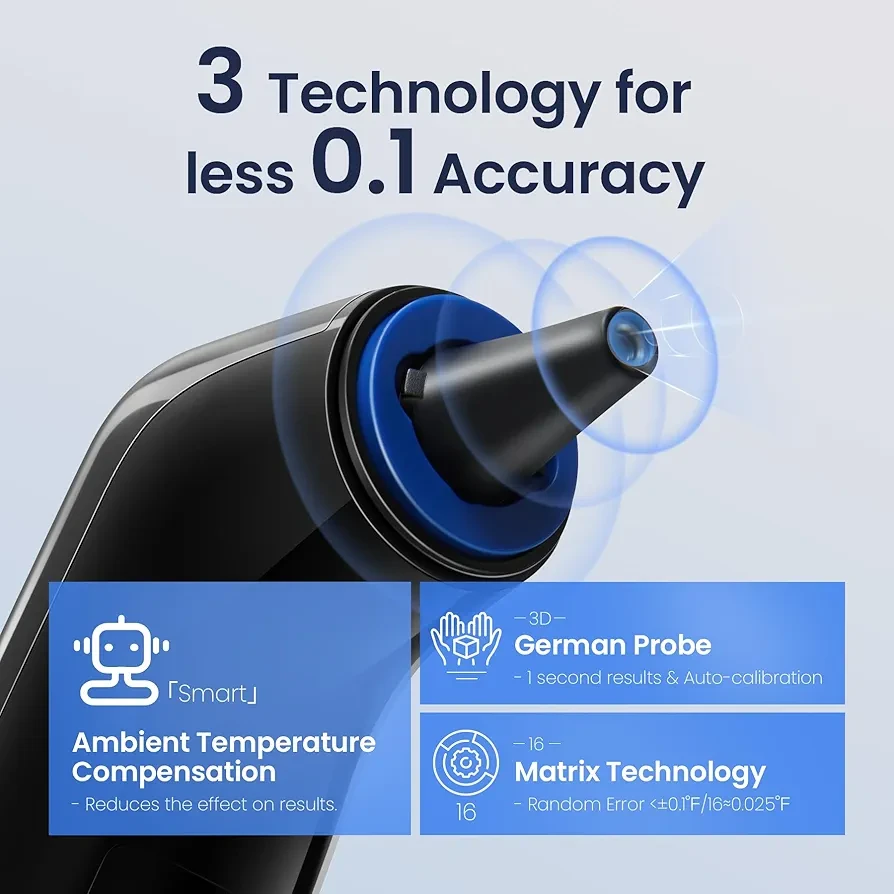 FAST & ACCURATE: Viproud Ear thermometer is equipped with the latest technology to intelligently measure temperature for three different age groups, providing accurate results in less than 1 second. It suitable for all ages(Including infants, newborns, adults and the elderly)
