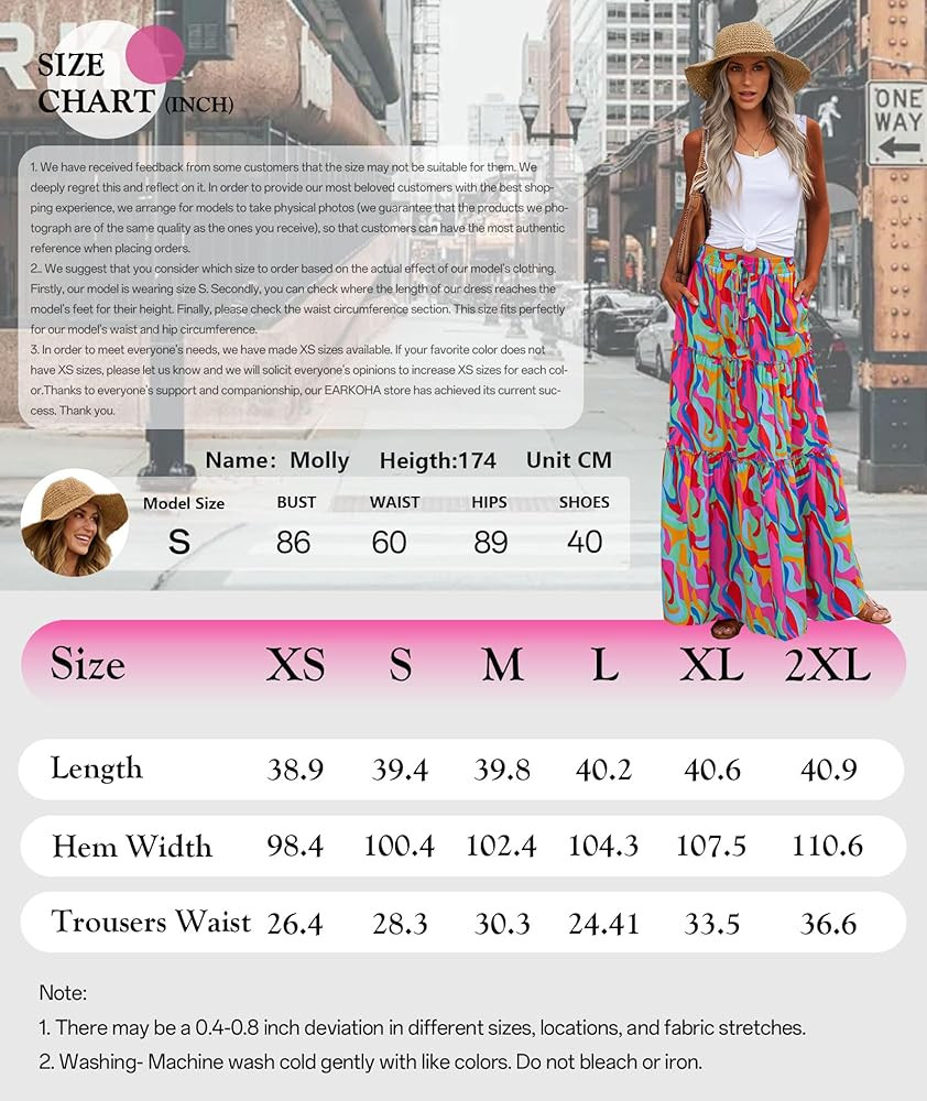 VINTAGE BOHO FEATURES: Long skirts for women, summer fall pleated skirts, elastic waistband, adjustable tie, high waisted skirts for women, boho vintage trendy type, fashion and casual. Women's skirts with two deep side pockets, easy to carry mobile phones, keys. Loose fit, flowy skirt, chic, perfect for summer, fall, winter.