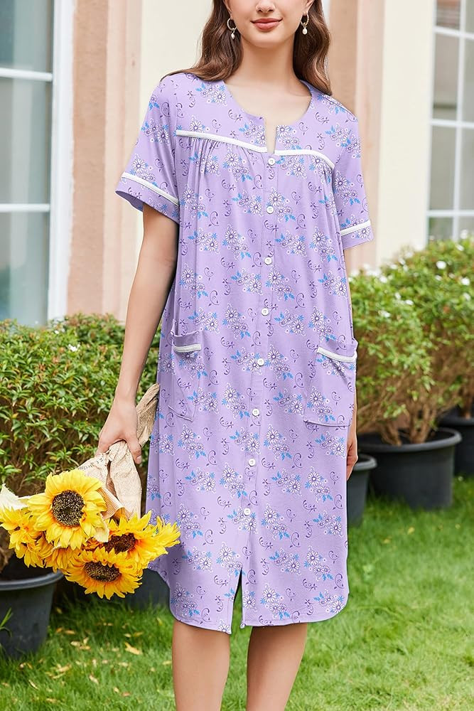 This button down house dress is super soft and breathable that great for women that provides great coverage and keep you cool and nice all night.