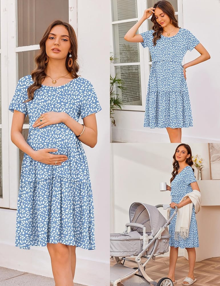Floral print and comfortable fabric, breathable for breastfeeding mamas. Give you the style and comfort you need through all stages of pregnancy.