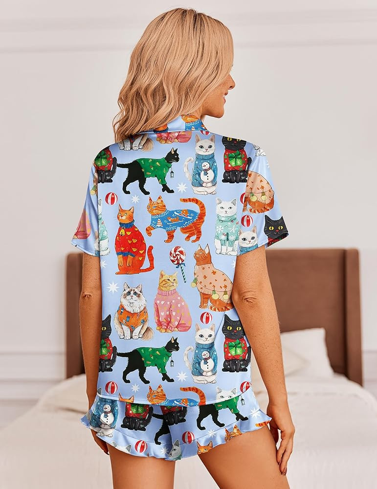 Womens pajama set featuring classic casual loungewear set style for relaxed fit