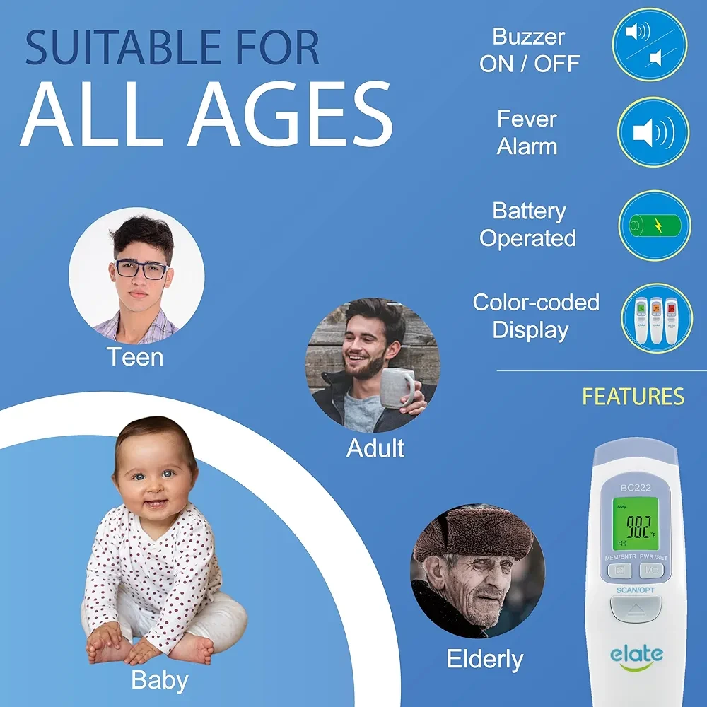 Thermometer for Adults and Kids: Our Elate thermometer is a must-have for everyone, from newborns to adults. It makes temperature monitoring easy and accurate, making it easy to monitor your health at home