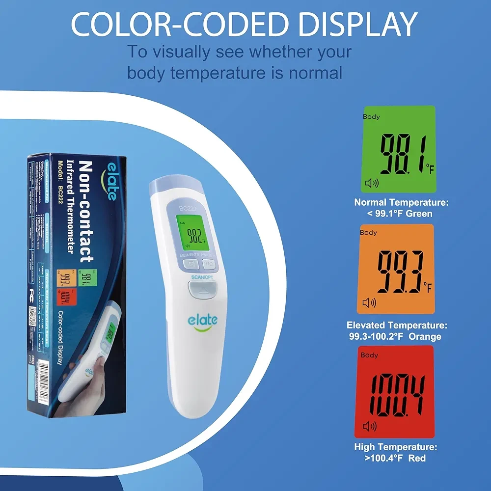 Elate No-Touch Forehead Thermometer for Adults and Kids, Non-Contact Digital Baby Thermometer for Infants/Newborns. Medical Grade Touchless Temporal Thermometer for Fever, FSA HSA Eligible