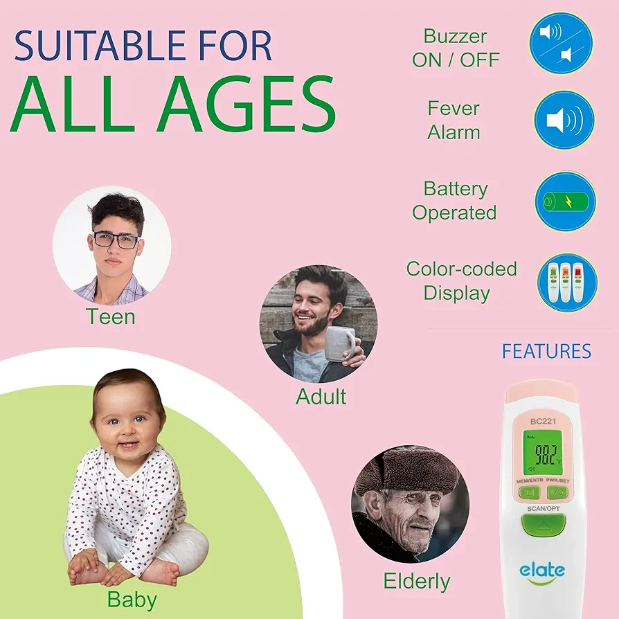 Thermometer for Adults and Kids: Our Elate pink thermometer is a must-have for everyone, from newborns to adults. It makes temperature monitoring easy and accurate, making it easy to monitor your health at home