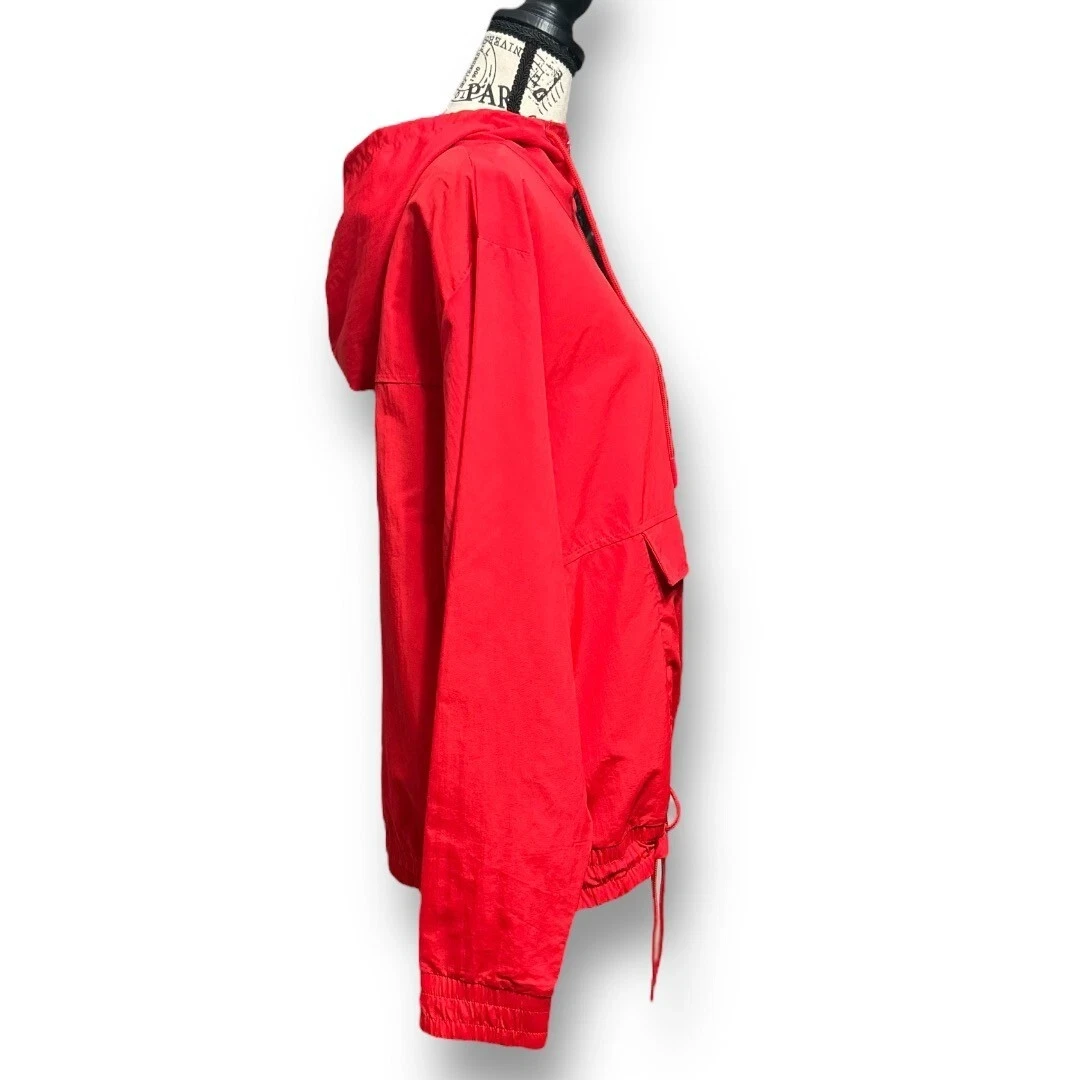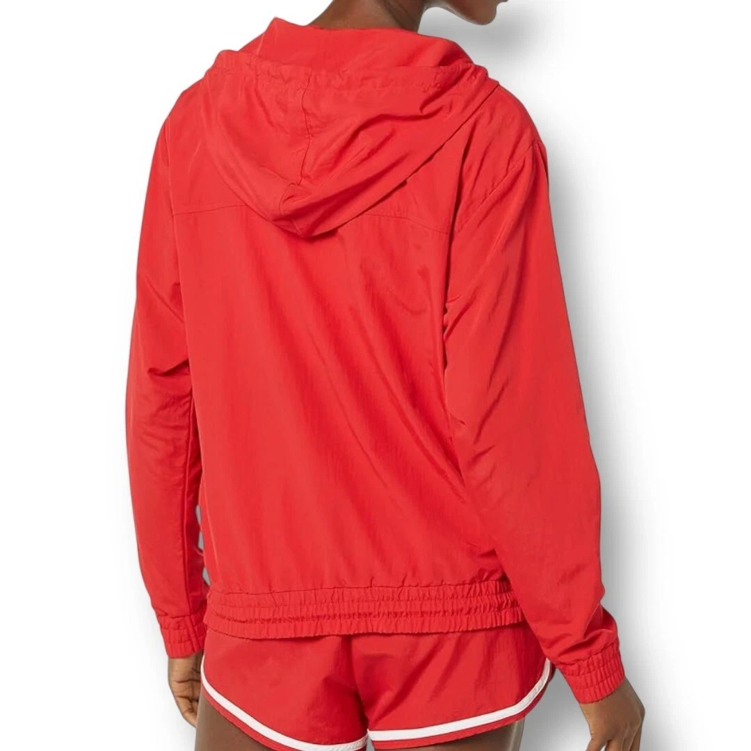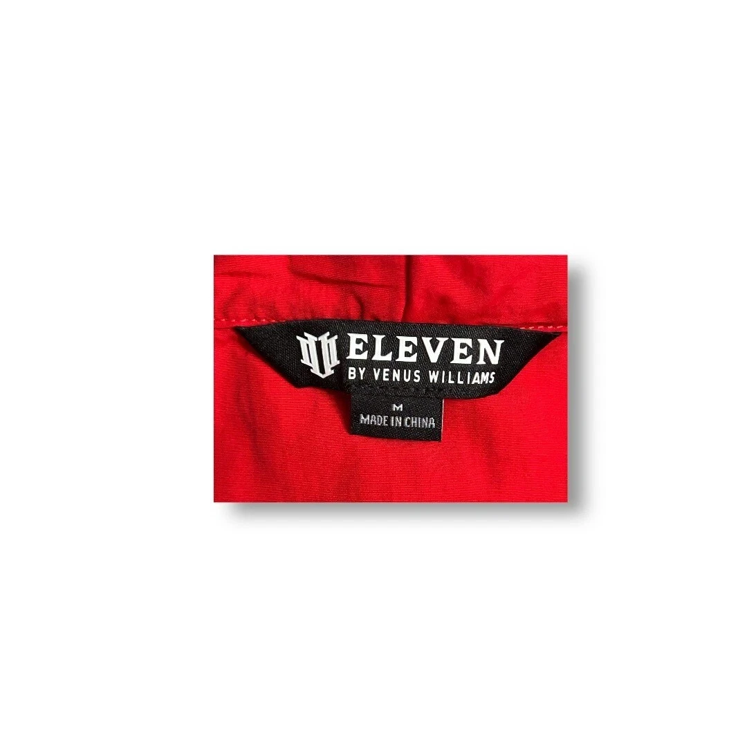 Description: Bold and sporty, this EleVen by Venus Williams Retro Daze jacket in apple red is perfect for warming up or cooling down. A lightweight tennis layer with a hood and front pouch. MSRP: $138.00