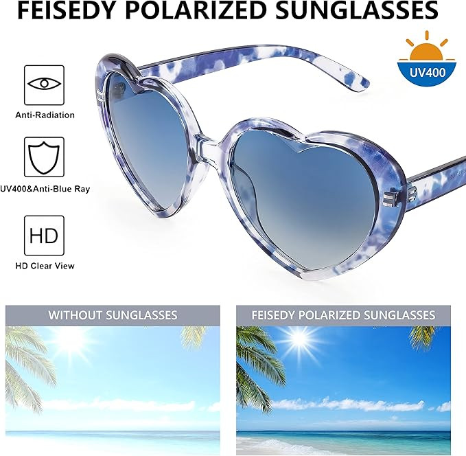 FEISEDY Polarized Heart Shaped Sunglasses Oversized Vintage Fashion Love Eyeglasses for Women UV400 B2337