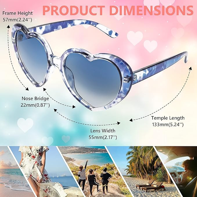 • Novel Design - Heart shaped sunglasses are an interesting trend, fashionable and new to make you look more attractive, perfect for those who want to be fun and stylish. When you wear it, you will show your unique personality and make you glamorous.