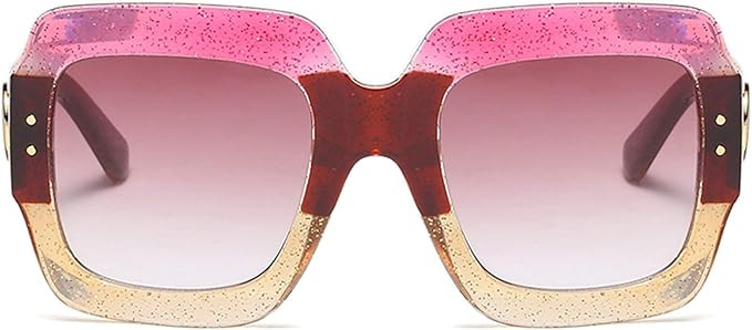 • Classic Retro Square Sunglasses Style - FEISEDY oversized square Sunglasses continue to use 70s retro style combined with fashion Multi Tinted Glitter Frames,fashionable and eye-catching