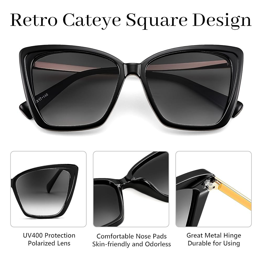• [Fashion Cateye Design] This classic sunglass is stylish and face-flattering. Oversized cateye sunglasses will leave a striking and lasting impression. This is a must have accessory for someone seek for fashion and elegance.