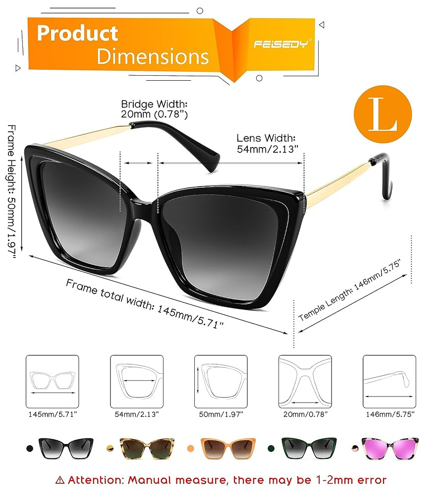 • [Suitable for Various Occasions] These FEISEDY sunglasses are brilliant existence in various occasion like shopping, traveling, vacation, photos, beach and party. You can choose them for daily wear all year round and for fashion accessories.