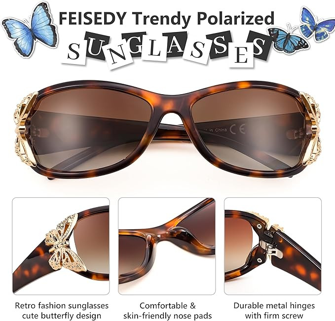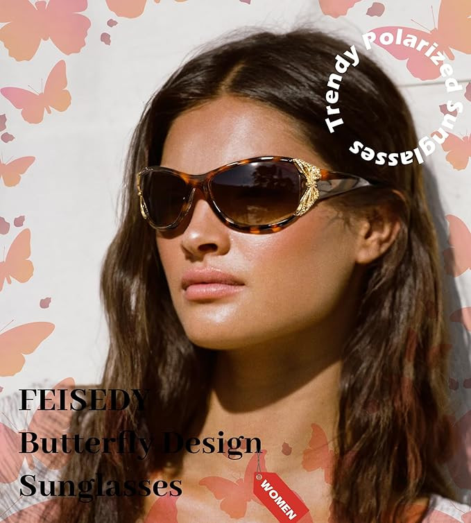 FEISEDY Trendy Polarized Y2K Sunglasses Wrap Around Butterfly Design Fashion Sunnies UV400 Protection B0078