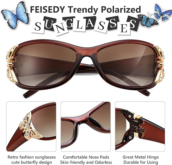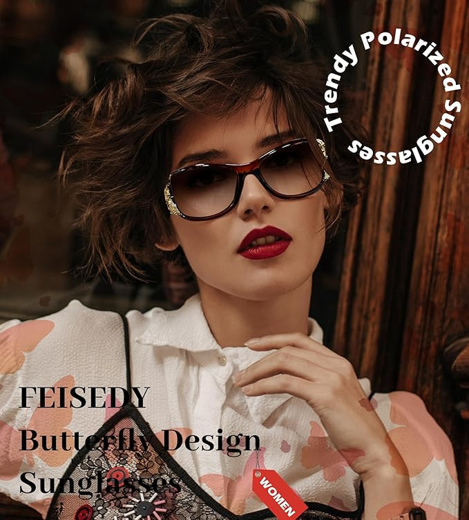 FEISEDY Trendy Polarized Y2K Sunglasses Wrap Around Butterfly Design Fashion Sunnies UV400 Protection B0078