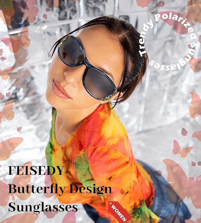 FEISEDY Trendy Polarized Y2K Sunglasses Wrap Around Butterfly Design Fashion Sunnies UV400 Protection B0078