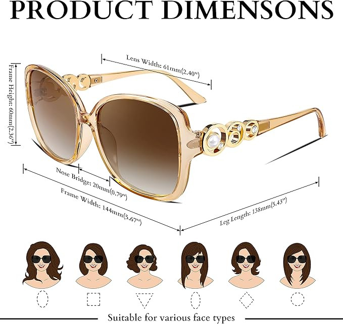 • [Fashion Women Sunglasses] This oversized sunglasses designed specifically for women are both fashionable and versatile, enhancing your look. With traditional frames and a variety of lens colors to choose from, you can easily pair these women's sunglasses with your wardrobe.