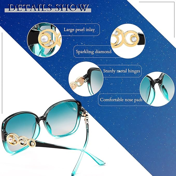 • [Fashion Women Sunglasses] This oversized sunglasses designed specifically for women are both fashionable and versatile, enhancing your look. With traditional frames and a variety of lens colors to choose from, you can easily pair these women's sunglasses with your wardrobe.