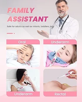 • Safe & Multifunctional - Safe to use, and for all ages like adults, kids, toddlers or babies. This digital thermometer is made from high-quality material. Waterproof design is easy to clean. For disinfection, 75% ethanol can be used. Easy, convenient and eco-friendly.