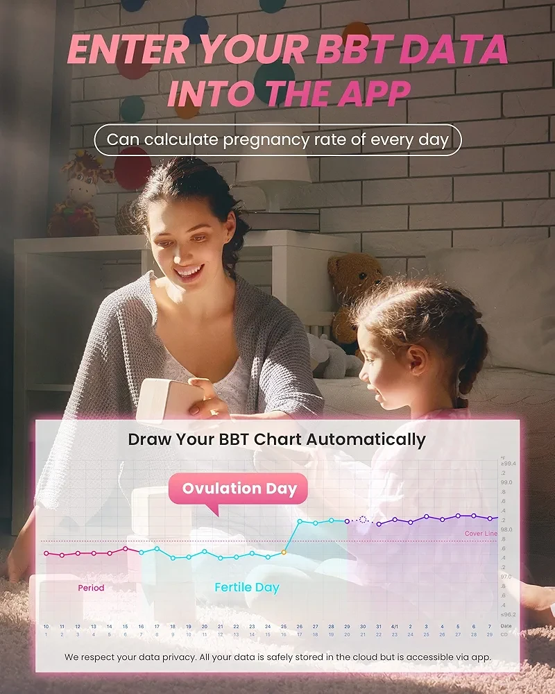 • Manually Entering & Automatically Chart - Use Femometer APP to record your BBT data (manually enter data into the app). The APP will automatically draw your BBT chart and pinpoint your ovulation. We respect your data privacy. All your data is safely stored in the cloud but is accessible via app.